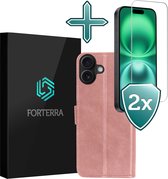 Étui pour iPhone 16 Bookcase protection d'écran - Étui pour iPhone 16 avec protection d'écran - Or rose