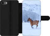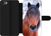 Etui pour iPhone 8 Bookcase - Jeune cheval du fjord recouvert de neige - Avec poches - Etui portefeuille avec fermeture aimantée