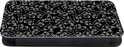 Un motif noir et blanc de fleurs assis dans des coeurs. .