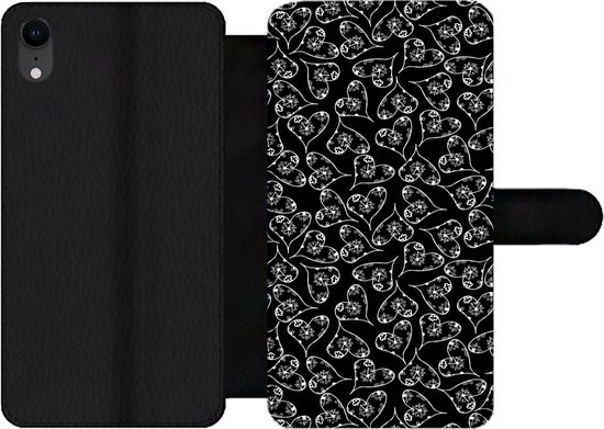 Etui pour iPhone XR Bookcase - Filles - Coeur - Fleurs - Motifs - Fille - Kids - Enfants - Enfant - Avec compartiments - Etui portefeuille avec fermeture aimantée