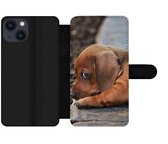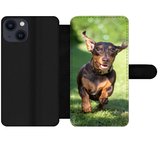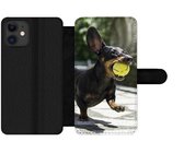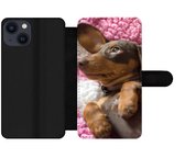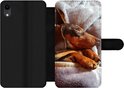 Étui pour iPhone XR Bookcase - Mignon teckel se trouve sous les couvertures - Avec poches - Étui portefeuille avec fermeture magnétique