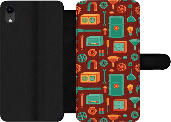 Étui pour iPhone XR Bookcase - Motif - Rétro - Outils - Avec compartiments - Étui portefeuille avec fermeture magnétique