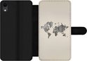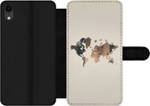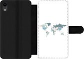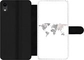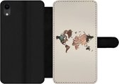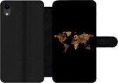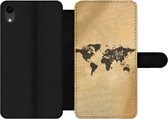 Etui pour iPhone XR Bookcase - Wereldkaart - Bois - Étagère - Avec compartiments - Etui portefeuille avec fermeture magnétique