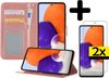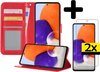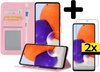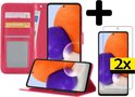Étui pour Samsung A72 Book avec 2x protecteur d'écran - Étui portefeuille pour Samsung Galaxy A72 - Étui Samsung A72 avec 2x protecteur d'écran - Rose foncé