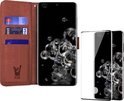Étui pour Samsung S20 Ultra et protection d'écran pour Samsung S20 Ultra - Étui pour Samsung Galaxy S20 Ultra Étui de livre en cuir Portefeuille + Protection d'écran complète - Marron