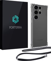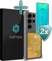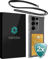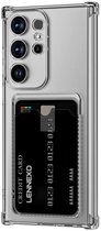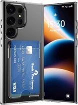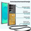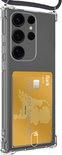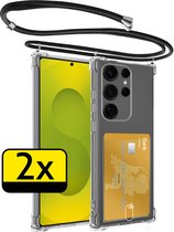 Étui pour Samsung S25 Ultra avec porte-cartes, étui en Siliconen avec cordon et 2 films de protection d'écran - Étui pour Samsung Galaxy S25 Ultra avec cordon de téléphone, coque arrière avec porte-cartes - Transparent