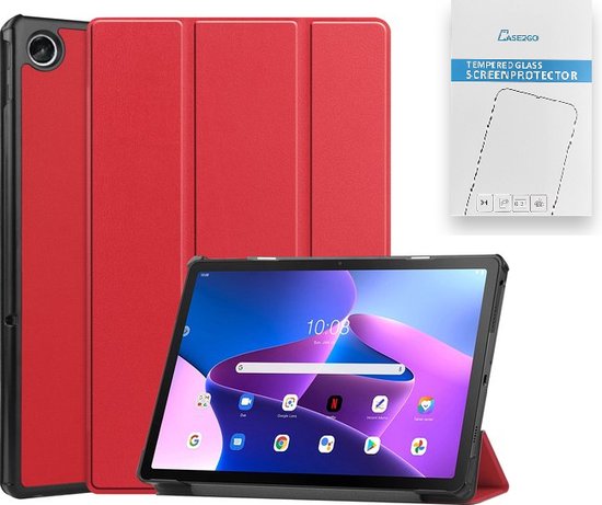 Étui pour tablette et protecteur d'écran pour Lenovo Tab M10 Plus (3ème génération) étui pour tablette et protecteur d'écran - Housse 2 en 1 - 10,6 pouces - Tri-Fold Book Case - Rouge