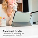 Regarder des vidéos avec une fonction standard La Bookcase à trois volets iMoshion est une couverture avec un rabat flexible. Le rabat avant de l'étui iPad 2017 (5e génération), iPad 6e génération (2018), iPad Air, iPad Air 2 se compose de 3 parties. Vous pouvez plier ces pièces, transformant ainsi l'étui en support de tablette pour un confort visuel supplémentaire. Le support peut être utilisé en orientation portrait ou paysage. De cette façon, vous pouvez profiter de votre jeu ou de votre série préférée en mode mains libres. Le support est également idéal pour lire un article d'actualité ou pour augmenter le confort de frappe.
