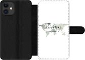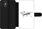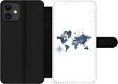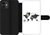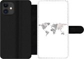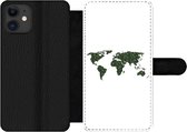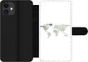 Étui pour téléphone iPhone 11 Bookcase - Wereldkaart - Vert - Grijs - Avec compartiments - Étui portefeuille avec fermeture magnétique