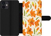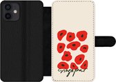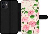 Étui pour téléphone iPhone 12 Bookcase - Bloem - Motifs - Rose - Avec poches - Étui portefeuille avec fermeture magnétique