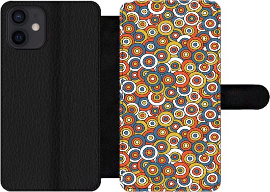 Étui pour téléphone iPhone 12 Bookcase - Motif - Rétro - Cercle - Avec compartiments - Étui portefeuille avec fermeture magnétique