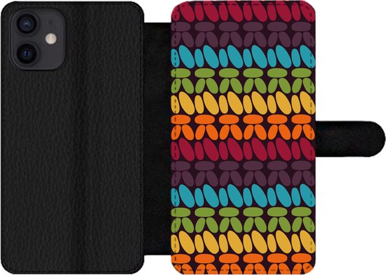 Étui pour téléphone iPhone 12 Bookcase - Motifs au crochet - Rétro - Arc-en-ciel - Avec compartiments - Étui portefeuille avec fermeture magnétique