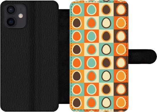 Étui pour téléphone iPhone 12 Bookcase - Rétro - Motifs - Oeuf - Avec compartiments - Étui portefeuille avec fermeture magnétique