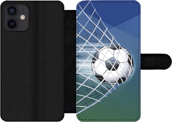 Étui pour téléphone iPhone 12 Bookcase - un ballon de football dans le filet - Avec compartiments - Étui portefeuille avec fermeture magnétique