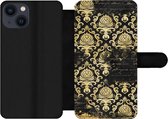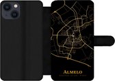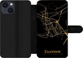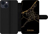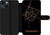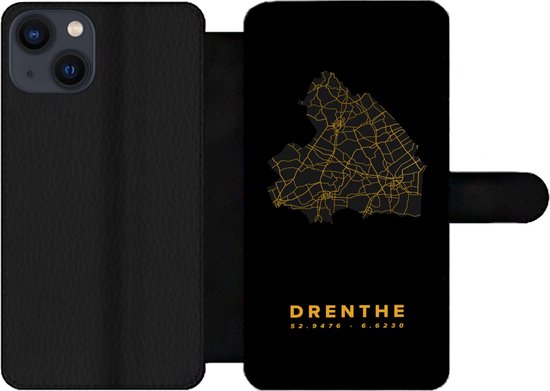 Étui pour téléphone iPhone 13 Bookcase - Drenthe - Carte - Or - Zwart - Avec poches - Étui portefeuille avec fermeture magnétique