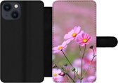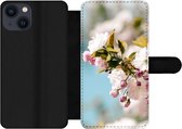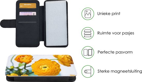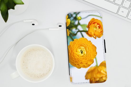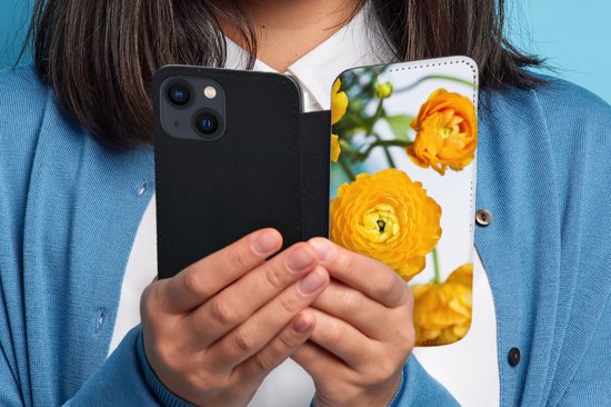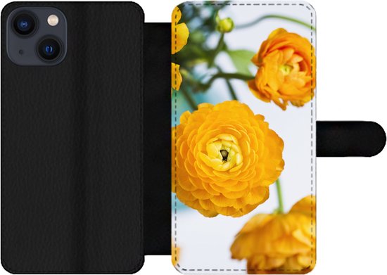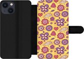 Étui pour téléphone iPhone 13 Bookcase - Fleurs - Extérieur - Oranje - Avec poches - Étui portefeuille avec fermeture magnétique