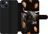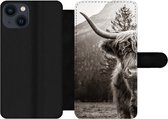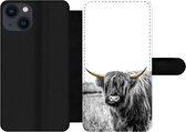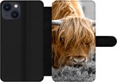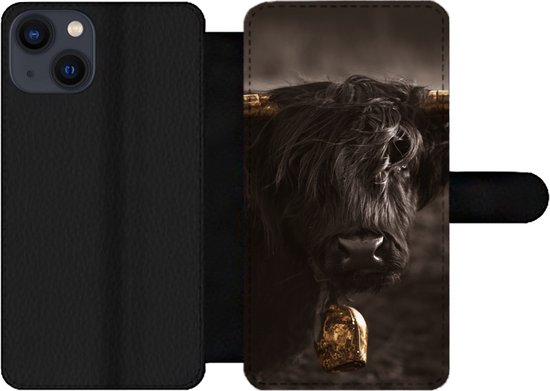 Étui pour téléphone iPhone 13 Bookcase - Highlander écossais - Fourrure - Zwart - Avec compartiments - Étui portefeuille avec fermeture magnétique