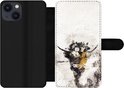 Étui pour téléphone iPhone 13 Bookcase - Highlander écossais - Peinture - Fleurs - Avec compartiments - Étui portefeuille avec fermeture magnétique