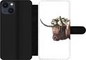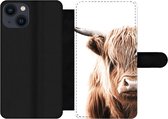 Étui pour téléphone iPhone 13 Bookcase - Highlander écossais - Vache - Roses - Avec compartiments - Étui portefeuille avec fermeture magnétique