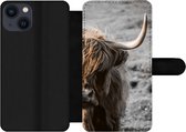 Étui pour téléphone iPhone 13 Bookcase - Highlander écossais - Vaches - Brouillard - Avec compartiments - Étui portefeuille avec fermeture magnétique