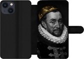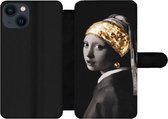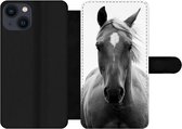 Étui pour téléphone iPhone 13 Bookcase - Peinture - Arc-en-ciel - Zwart - Wit - Avec poches - Étui portefeuille avec fermeture magnétique