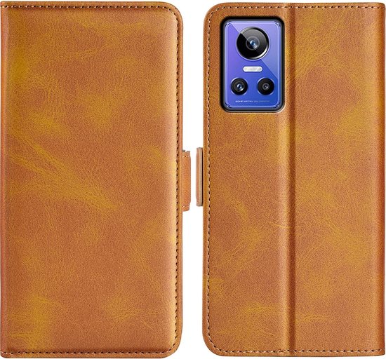 Étui Realme GT Neo 3 - Mobigear - Série Slim Magnet - Bookcase en cuir artificiel - Cognac - Étui adapté pour Realme GT Neo 3