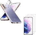 Étui Samsung Galaxy S21 Étui souple en Siliconen TPU transparent + protecteur d'écran en Tempered Glass 2X