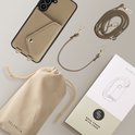 Les cordons sont à la fois détachables et réglables pour une facilité d'utilisation ultime. De plus, ils s'harmonisent parfaitement avec la coque arrière. La construction coulissante pratique vous permet d'ajuster facilement le long cordon à la longueur souhaitée. Rallongez le cordon lorsque vous souhaitez le porter en bandoulière et utilisez la dragonne lorsque vous souhaitez garder votre smartphone à portée de main en toute sécurité. De plus, les cordons sont amovibles grâce aux crochets dorés, vous pouvez donc également utiliser la housse comme coque arrière séparée.