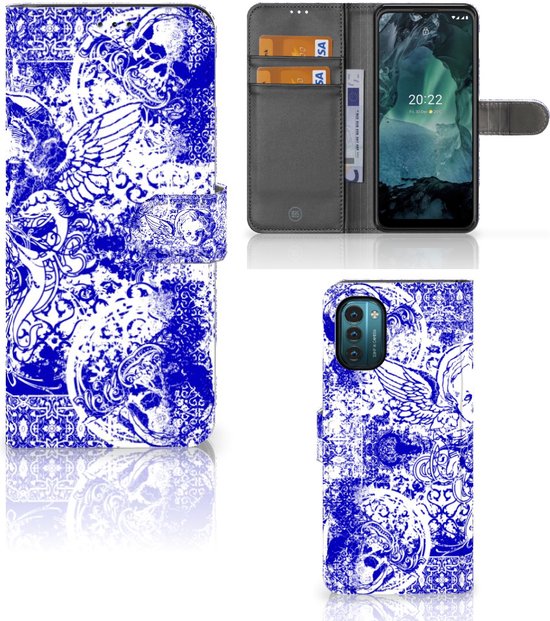 Étui style livre Nokia G11 | Coque Smartphone G21 Crâne d' Angel Blue Convient pour Nokia G11 | G21