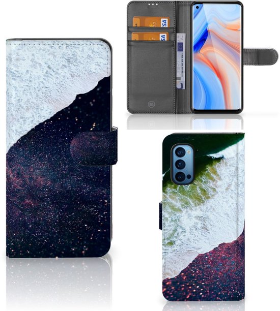 Etuis Portefeuille Compatible avec Cuir Flip Cover Fermeture magnétique pour OPPO Reno 4 Pro 5G Coque Espace Mer