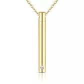 Ce tube en acier inoxydable très étroit de seulement 5 mm de large est rempli au fond d'une petite pierre de cristal. Livré avec une chaîne à maillons fins de 50 cm de long. La taille du tube est d'environ 5x46 mm.