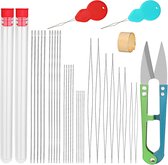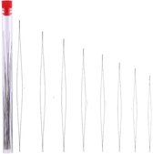 Un outil pratique pour enfiler des perles. Ces aiguilles "Big Eye" ont un œil qui peut être ouvert sur toute la longueur de l'aiguille. Cela permet au fil d'être enfilé très facilement. L'ensemble contient 9 longueurs d'aiguilles différentes allant de 38 à 135 mm.