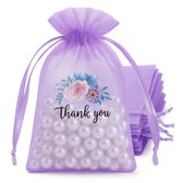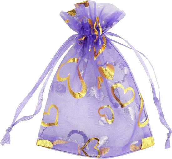 Fako Bijoux® - Sacs Organza - 10x12cm - Sacs de Fête - Sacs à Bonbons - Sacs Cadeaux - Sacs à Bijoux - Coeur Violet - 50 Pièces