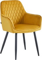 Prenez place dans votre nouveau fauteuil préféré ! Envie d'un peu de glamour dans votre salle à manger ? Avec nos chaises TURIN c'est facile ! Le design intemporel de la chaise s'intègre facilement dans n'importe quelle atmosphère, mais le revêtement en velours lui confère une touche d'extravagance. Le look est complété par les coutures décoratives qui longent le dossier confortablement rembourré. Pas seulement un accroche-regard dans la salle à manger ! Les pieds noirs de forme conique confèrent également à la chaise une touche rétro. Il a fière allure sur n'importe quelle table à manger, table de bureau ou salle de réunion. En ce qui concerne les options de combinaison avec des tables et d'autres meubles, vous pouvez décider selon eigen goûts. Notre conseil : une table ou un buffet aux pieds noirs s'accorde parfaitement avec le design de la chaise ! Attention : le velours est un matériau de rembourrage très spécial aux propriétés uniques. La luminosité et l'intensité de la couleur peuvent varier et des motifs uniques peuvent apparaître sur le tissu, en fonction de la direction dans laquelle les fibres fines sont teintes et de la manière dont le tissu est éclairé. Le résultat est une composition individuelle de nuances de couleurs et de structures de surface qui transforme toujours votre meuble en un fascinant accroche-regard. COULEUR * Revêtement : jaune moutarde * Pieds: noir MATÉRIAU * Revêtement : velours (100 % polyester) * Pieds: métal DÉTAILS DU PRODUIT * Le revêtement en velours confère à la chaise une certaine extravagance * Les pieds en métal noir offrent un beau contraste avec la capote * Avec des accoudoirs confortables et un rembourrage de haute qualité pour un confort d'assise optimal * Les coutures décoratives le long du dossier attirent également l'attention * Capacité de charge maximale : 120 kg Largeur 60 cm Hauteur 84 cm Profondeur 61 cm Largeur d'assise 43 cm Hauteur d'assise 49 cm Profondeur d'assise 39 cm Hauteur du dossier 42 cm Hauteur des accoudoirs 19 cm Distance entre le sol et l'accoudoir 64 cm INFORMATIONS DE LIVRAISON