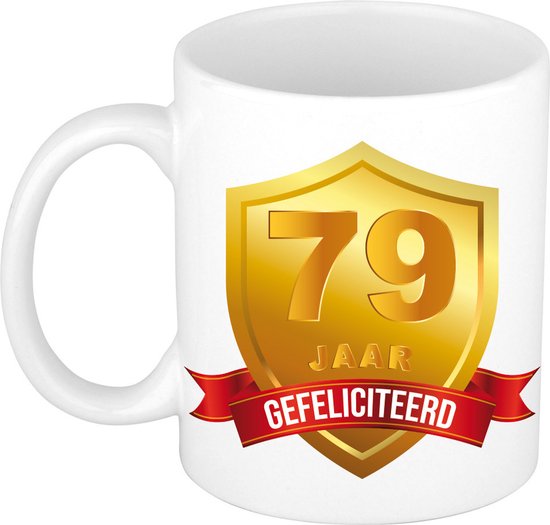 Félicitations 79 ans Gold Shield Anniversary / Birthday Mug - Gift Cup