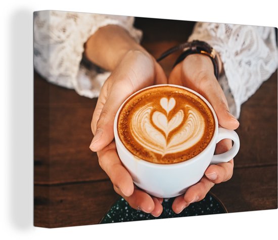 Femme avec oeuvre dans une tasse de café toile 2cm 90x60 cm - Tirage photo sur toile (Décoration murale salon / chambre)