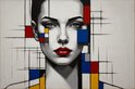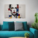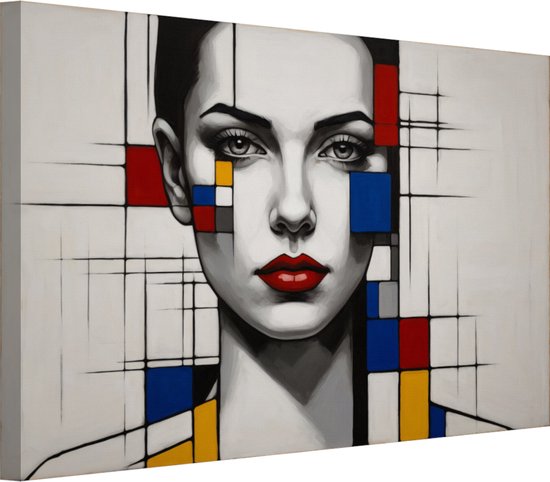 Femme style Piet Mondrian - Peinture abstraite - Décoration murale Piet Mondriaan - Peintures rurales - Peintures sur toile salon - Oeuvre - 70 x 50 cm 18mm