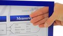 Les cadres magnétiques sont constitués d'une feuille de plastique transparente, pourvue d'un bord coloré de 1,7 cm de large. Des bandes magnétiques sont attachées à l'arrière. L'intérieur du cadre est découpé pour que le document sous-jacent puisse être directement écrit.