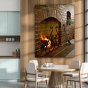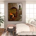 Feu dans une cheminée 120x160 cm - Tirage photo sur toile (Décoration murale salon / chambre) XXL / Grand format!
