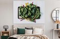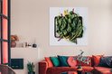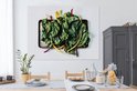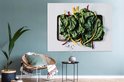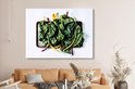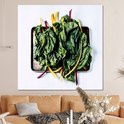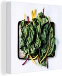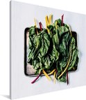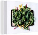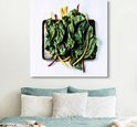 Feuilles de blettes sur une feuille noire Toile 160x120 cm - Tirage photo sur Toile (Décoration murale salon / chambre) XXL / Groot format!