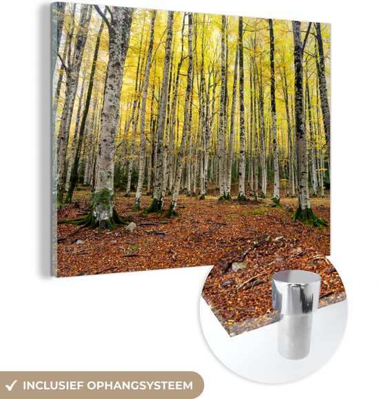 Feuilles jaunes dans la forêt en automne Glas 90x60 cm - Tirage photo sur Glas (Décoration murale en plexiglas)
