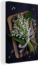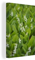 Feuilles vert foncé autour du muguet sur toile 30x20 cm - petit - Tirage photo sur toile (décoration murale salon / chambre)