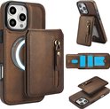 FFO2World MagSafe Étui portefeuille iPhone 16 Pro avec porte-cartes – Étui à rabat 2 en 1 amovible en cuir PU avec Protection RFID et béquille, compatible avec MagSafe – Marron