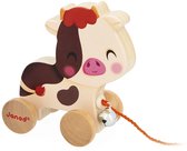 Une belle figurine à tirer en bois en forme de vache et son bébé.