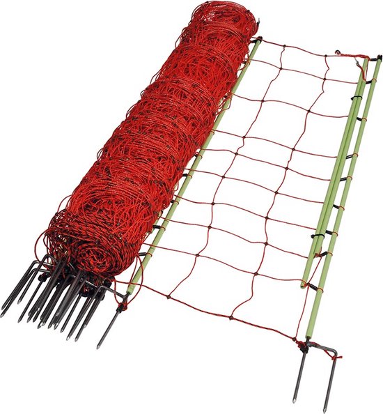 Filet de clôture pour la protection de vos animaux contre les loups, avec une connexion plus / moins. Cela signifie que les fils sont connectés en alternance aux pôles positif et négatif de l'électrificateur. Lorsqu'il touche 2 fils en même temps, l'animal subit immédiatement un violent choc court. Ce système assure la pleine tension même sur les surfaces où la mise à la terre est difficile. Le filet avec 14 poteaux à double broche mesure 1,20 m de haut, 50 m de long et est très facile à utiliser.