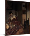 Fille endormie - Peinture de Johannes Vermeer Aluminium 120x160 cm - Tirage photo sur Aluminium (décoration murale métal) XXL / Groot format!