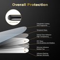 Le protecteur d'écran en verre trempé a une épaisseur de 0,3 mm et est transparent, avec des pièces en silicone sur le côté non adhésif pour une meilleure glisse des doigts sur l'écran. La fidélité des couleurs de l'écran est toujours garantie.