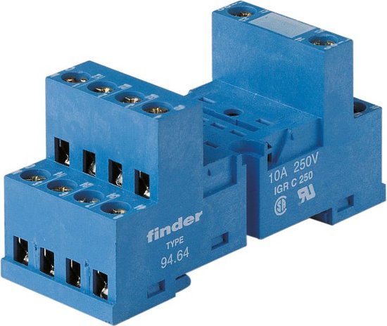 Finder 94.64 Relaissocket (l x b x h) 28 x 27 x 71 mm 1 stuk(s)Relaisfitting met schroefaansluitingen voor DIN-rail, voor relais 55.32 of 55.34, kleur blauw De teksten voor dit artikel zijn automatisch vertaald.