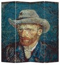 Paravent pratique en toile 4 panneaux avec le célèbre autoportrait de Vincent van Gogh. L'écran pliant double face est multifonctionnel et peut, par exemple, séparer des pièces d'une pièce, couvrir une fenêtre ou servir d'élément décoratif.