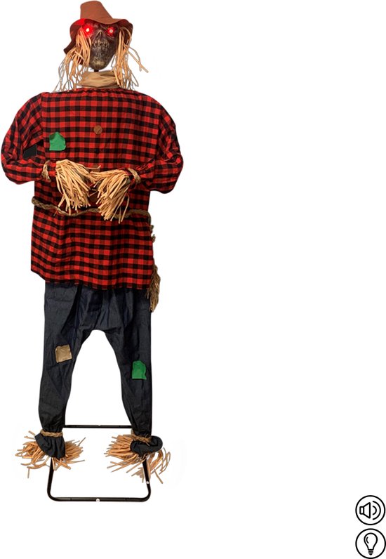 Cet épouvantail effrayant est la décoration d’Halloween parfaite pour effrayer vos invités ! Installez facilement l'épouvantail et transformez votre emplacement en une véritable maison hantée en un rien de temps. Le capteur sonore garantit qu'il fera du bruit et donnera de la lumière, super effrayant, n'est-ce pas ?!